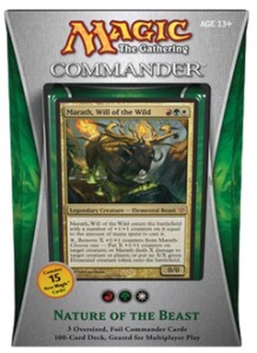 Nature of the Beast to gotowa talia Commander 2013, idealna dla miłośników strategii w kolorach czerwonym, zielonym i białym. Ta talia Magic: The Gathering została skomponowana z myślą o dynamicznej rozgrywce, w której kluczową rolę odgrywają potężne stworzenia oraz wsparcie zaklęć. Zawiera unikalne karty takie jak Marath, Will of the Wild czy Gahiji, Honored One, które zapewniają różnorodne możliwości taktyczne i kontrolę nad polem bitwy.