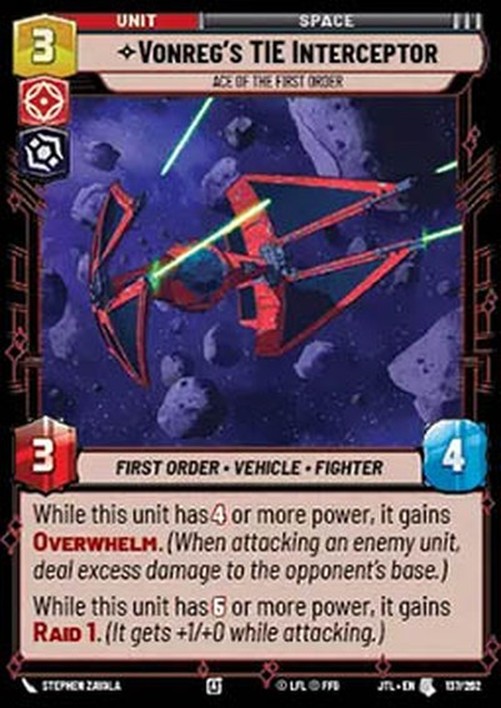 Star Wars Unlimited JTL Vonreg’s TIE Interceptor, Ace of the First Order (V.1)