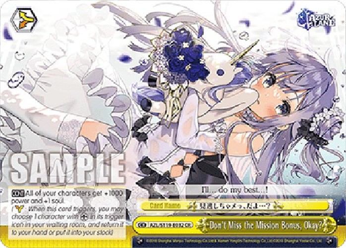 Weiß Schwarz AZL/119 Don’t Miss the Mission Bonus, Okay? (V.1 – Climax Rare)